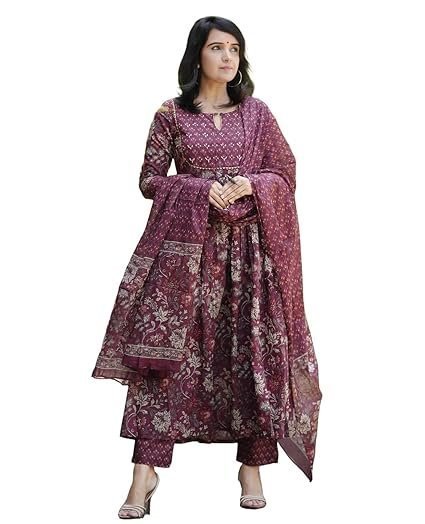 Alvami Women Anarkali Kurta and Pant Set with Dupatta