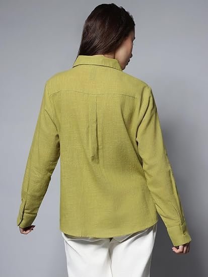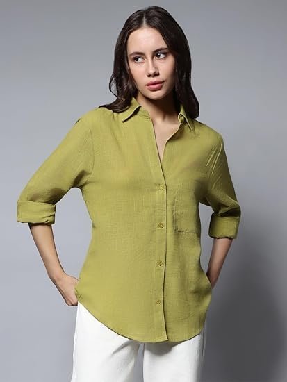 The women’s solid opaque oversized casual shirt is a comfortable and stylish piece of clothing suitable for various occasions.
