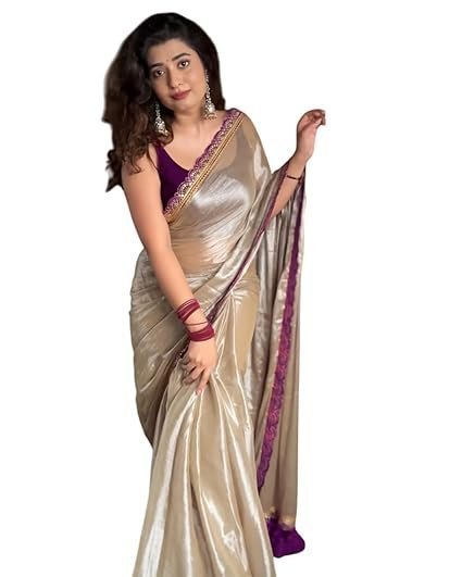 HMP Fashion Womens Pure Soft Two Tone Erode Soft Silk Sarees with Amazing Lace work Border and Paired with Plain Banglori Blouse piece