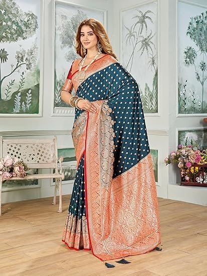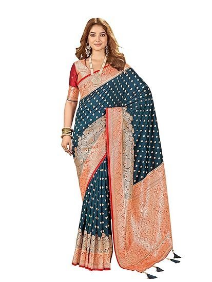 Saree Details || Saree Fabric :- Silk Blend |Saree Pattern :- Elaborate paisley | Saree Length :- 5.5 Meter | Saree Color : Navy Blue