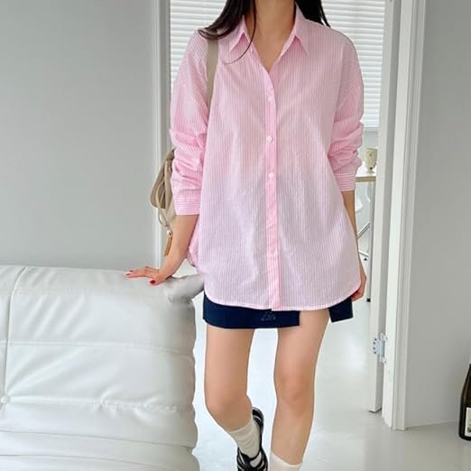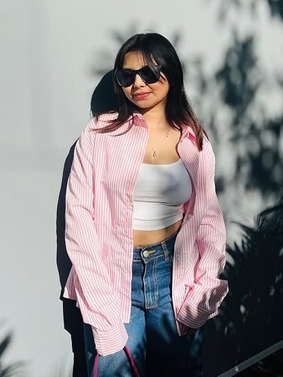 Women Cloth'sWomen’s Pink Striped Shirt | Elegant Button Down Shirt for Women | Stylish Casual & Office Wear Top